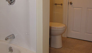 Modern bathroom with tile flooring